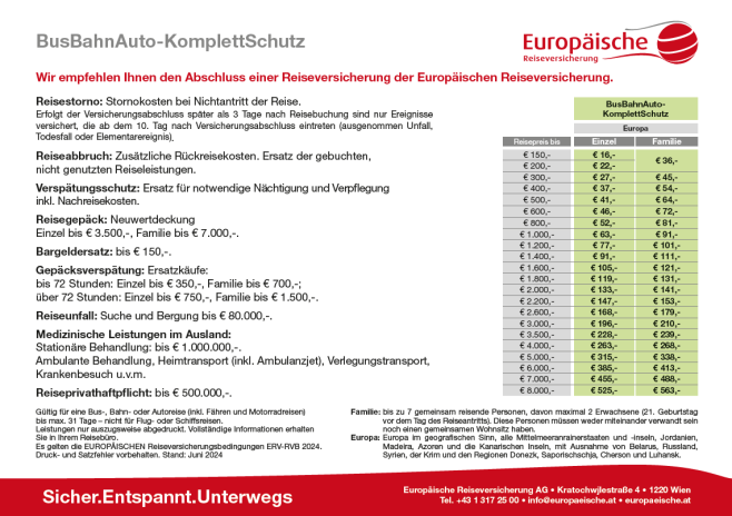 Gerne übernehmen wir für Sie den Abschluss Ihrer Reiseversicherung!